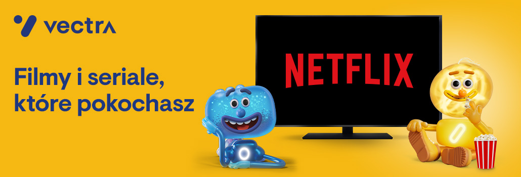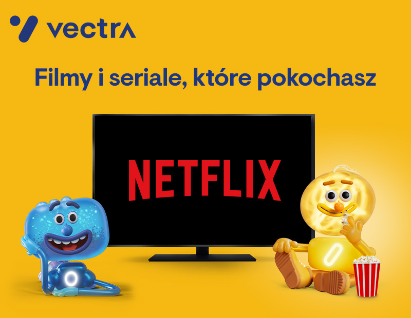 Materiał nie stanowi oferty handlowej, a jest zaproszeniem do zawarcia umowy. Materiał skierowany do obecnych Abonentów. Opłata Abonamentowa została obniżona na okres i do kwoty wskazanych w materiale. Po tym okresie obowiązuje cena wskazana w Warunkach Umowy. Netflix zawarta w Ofercie Usług oznacza Plan Podstawowy, a szczegółowe warunki świadczenia są określone w Regulaminie Usługi Netflix. Materiał nie zawiera pełnej informacji o szczegółowych warunkach świadczenia usług i ich dostępności (np.: okres zobowiązania, opłaty jednorazowe, opłata abonamentowa po okresie zobowiązania, zasięg terytorialny, warunki, zakres i okresy dostępności, liczba programów telewizyjnych, w tym gwarantowanych i niegwarantowanych, oraz innych ograniczeń i warunków szczególnych świadczenia Usług). Pełna informacja o warunkach świadczenia Usług znajduje się w Regulaminach, na Stronie WWW, w wykazach programów gwarantowanych i niegwarantowanych, pod numerem 601 601 601 (opłata wg stawek operatorów) oraz w Biurach Obsługi Klienta Vectra.